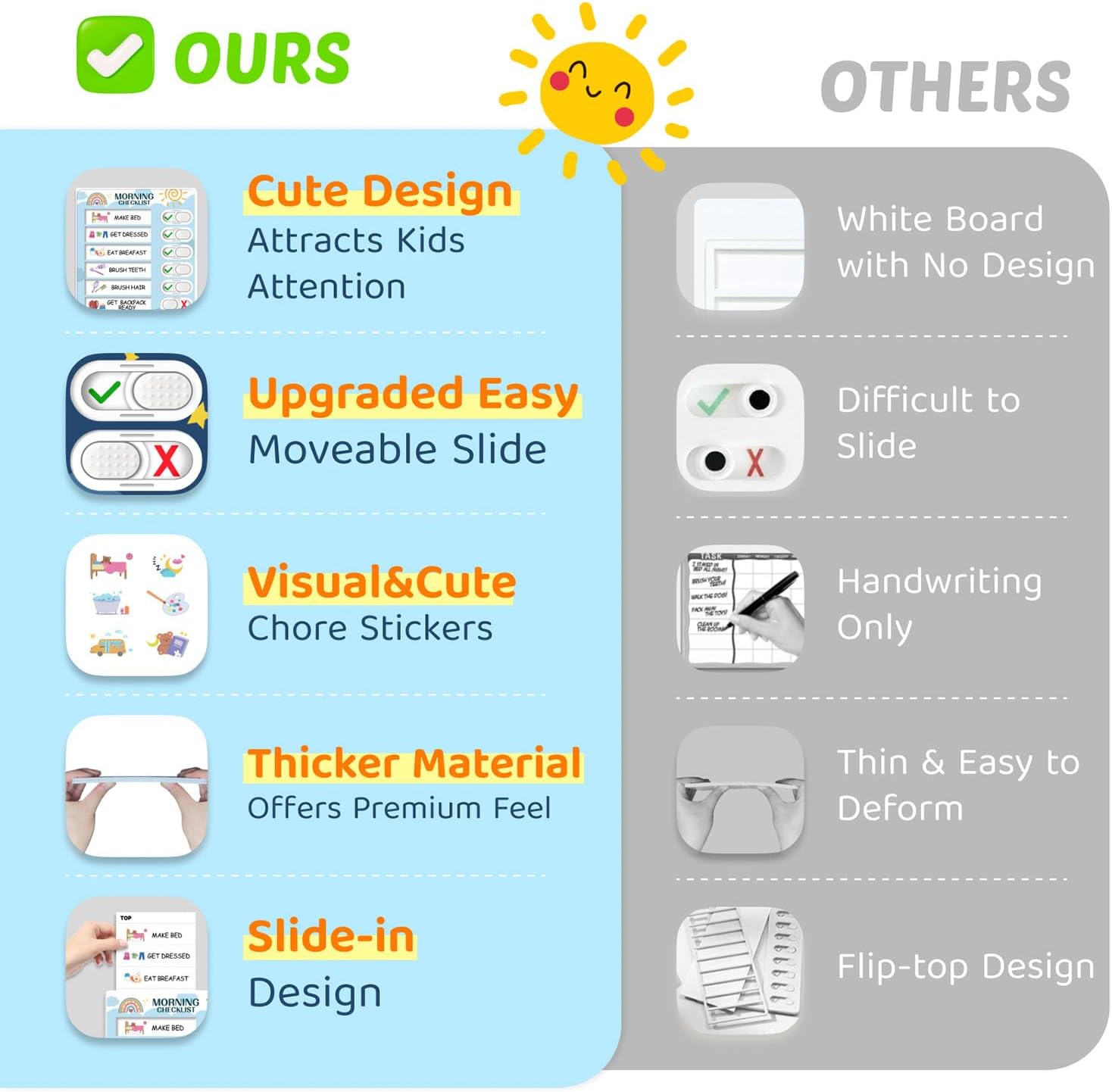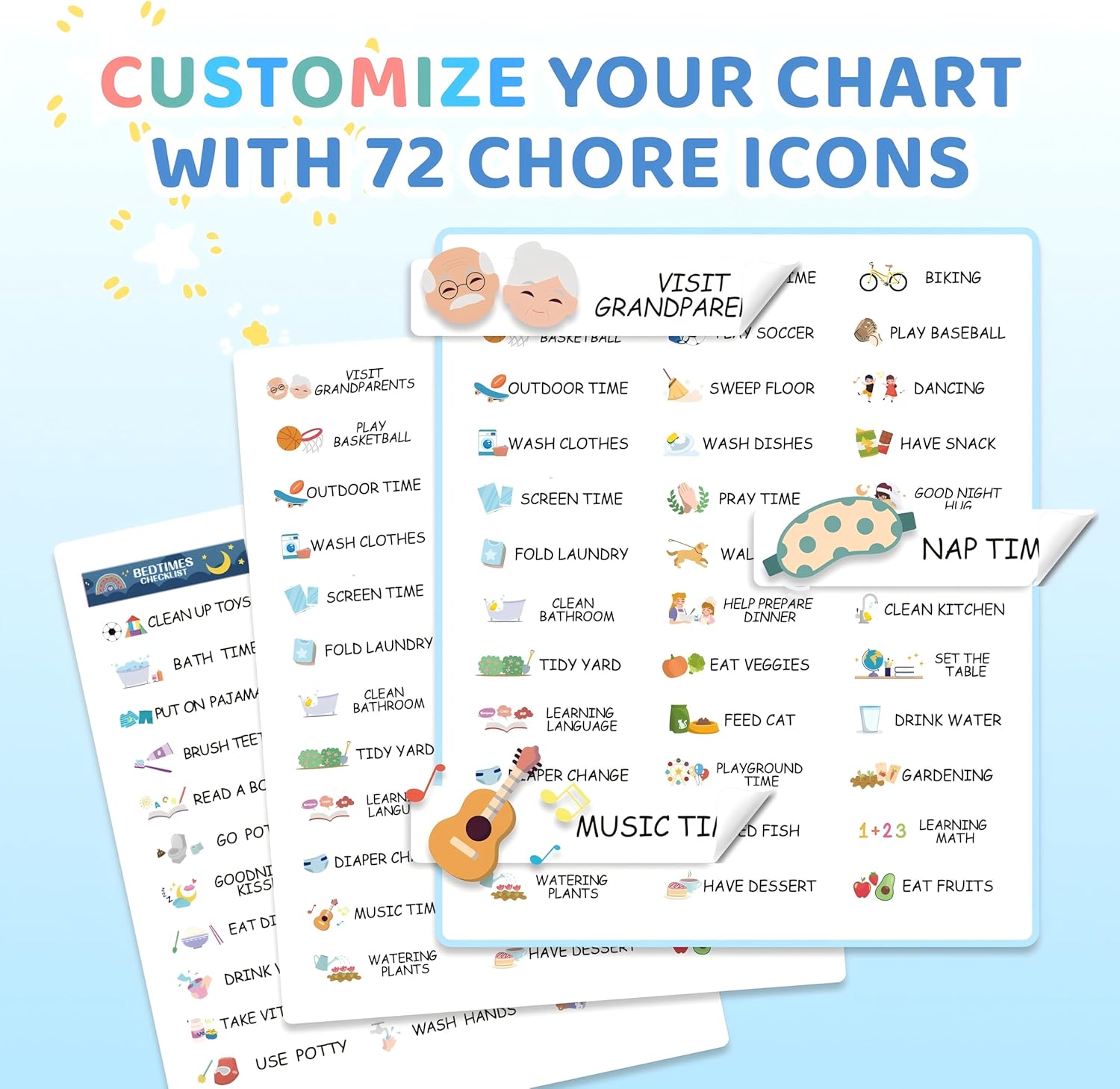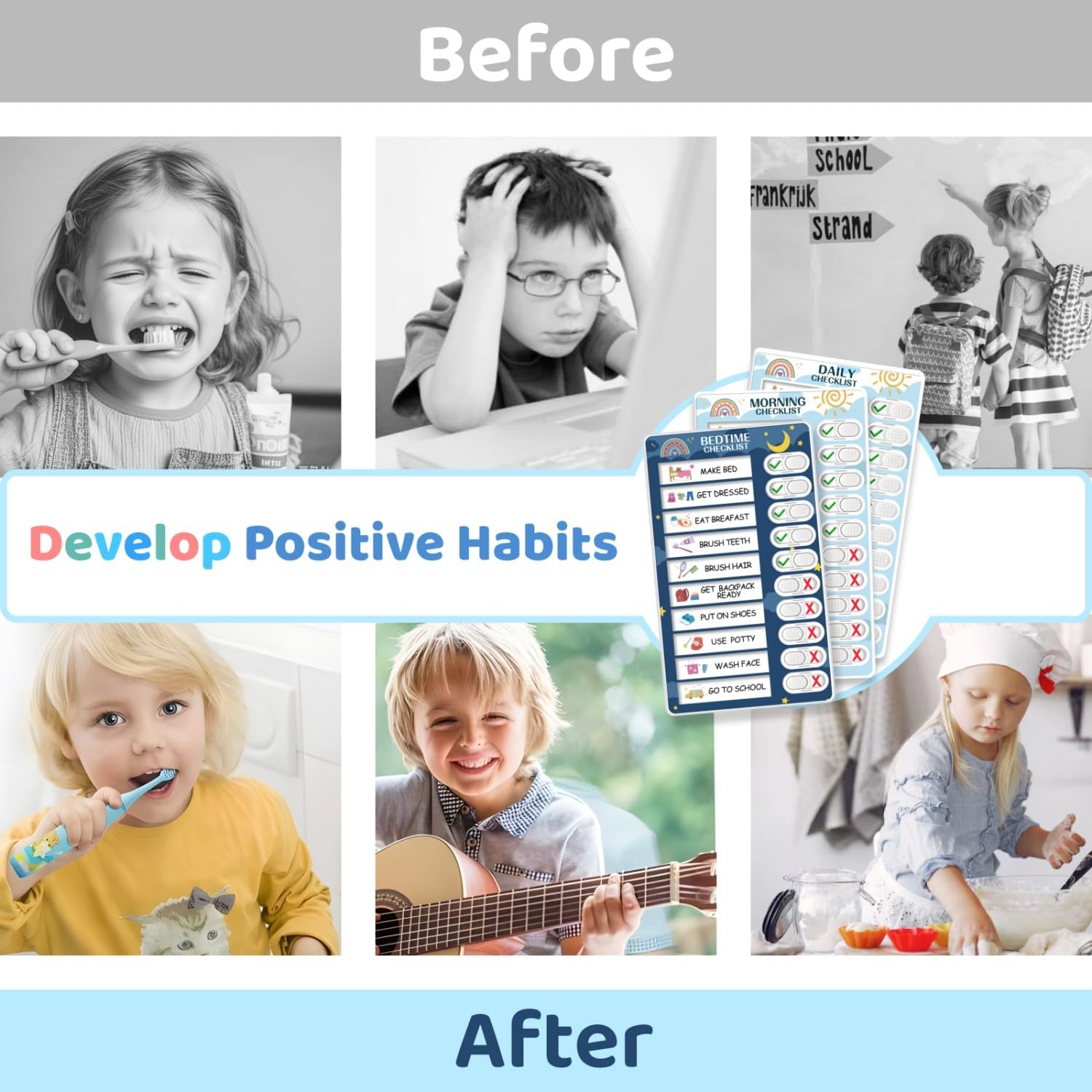 • 3-in-1 routine board: morning, daily & bedtime tasks